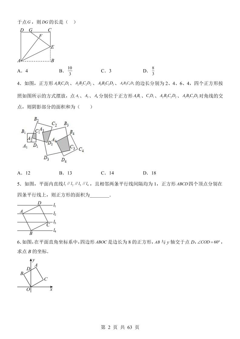 首页 > 全部 > 数学 > 暑假作业06 正方形性质与判断类型题