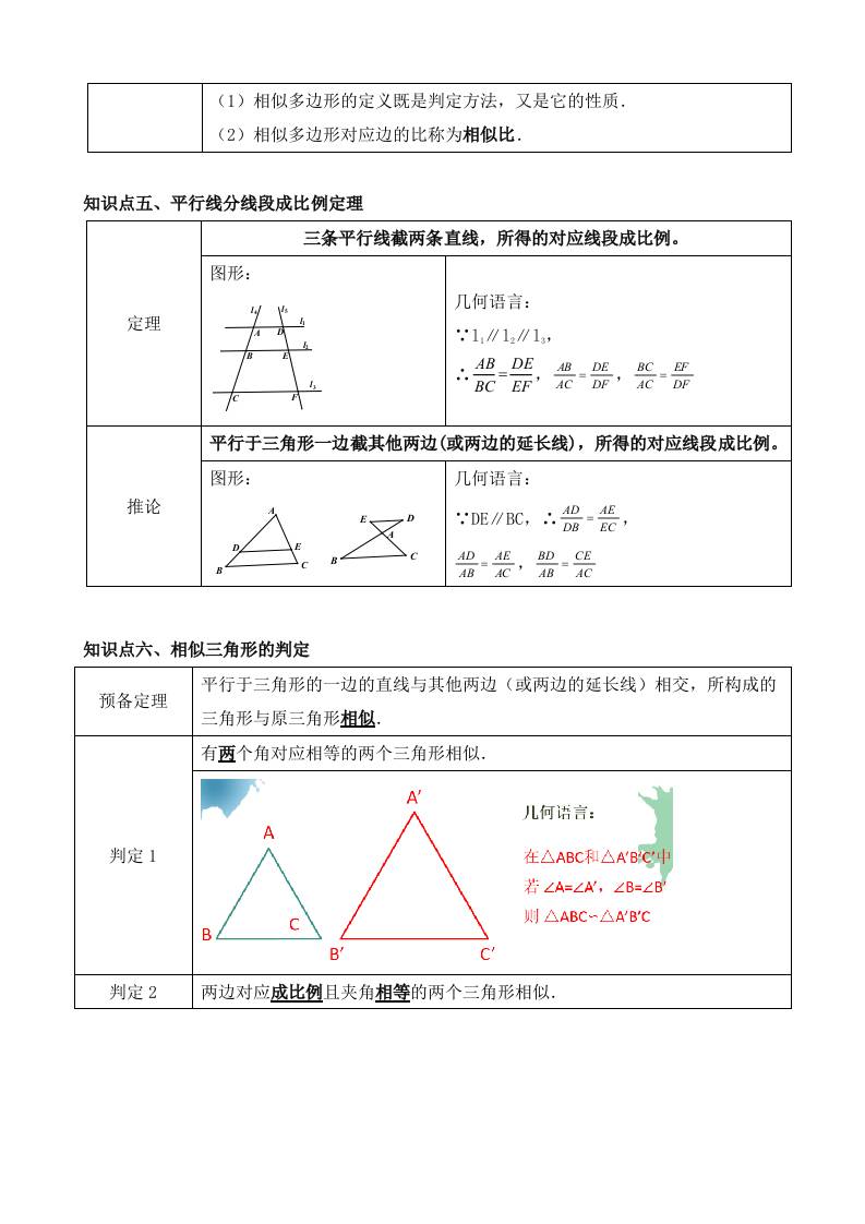初级 第二十四章 相似三角形(11个知识归纳)
