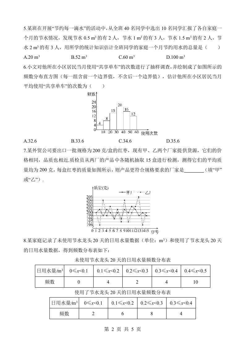 初级 23.4 用样本估计总体 同步练习
