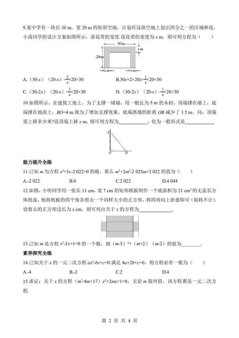 24.1 一元二次方程 同步练习