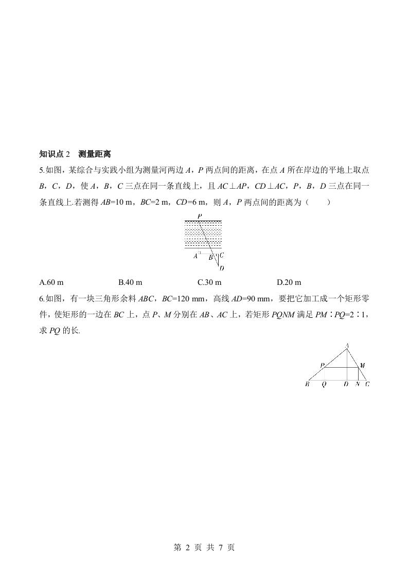 初级 25.6 相似三角形的应用 同步练习