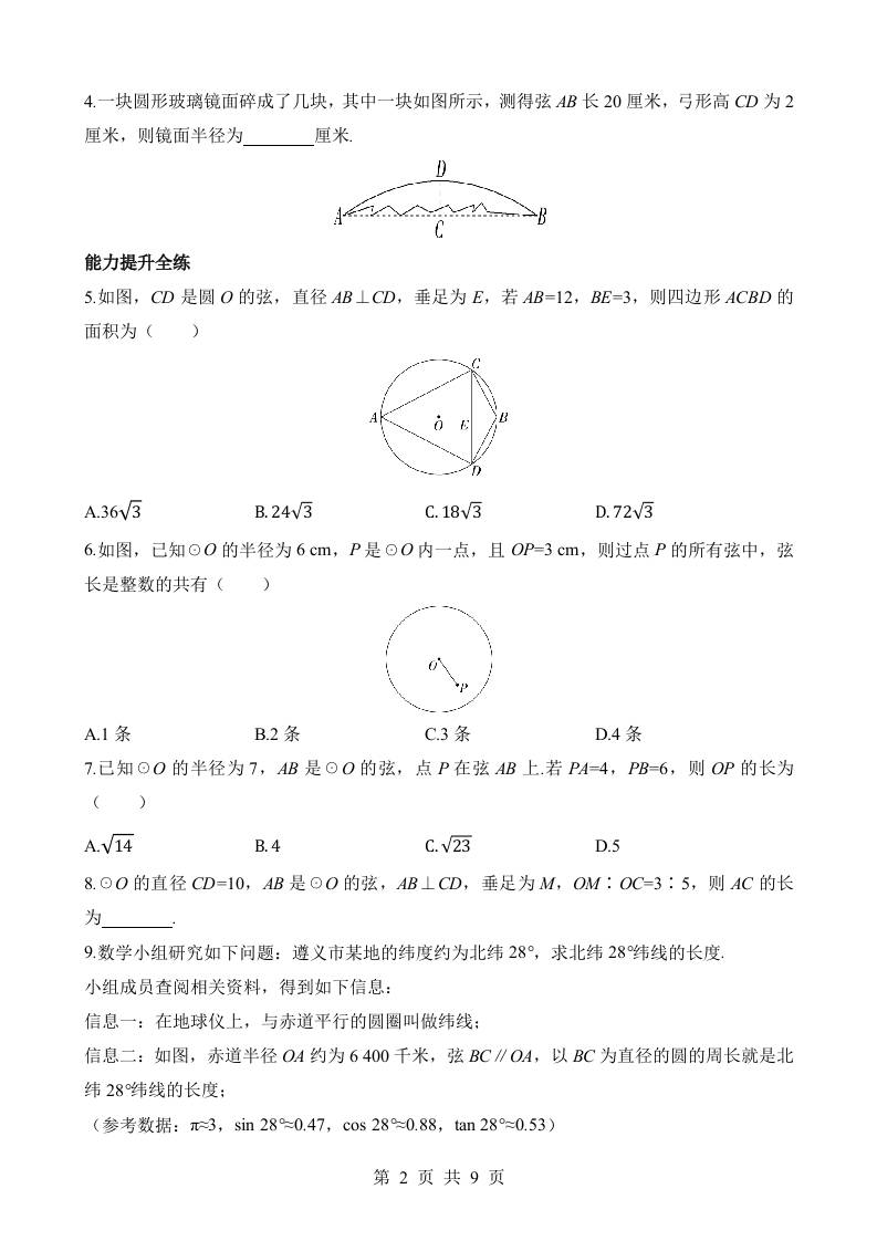 首页 > 全部 > 数学 > 28.4 垂径定理 同步练习