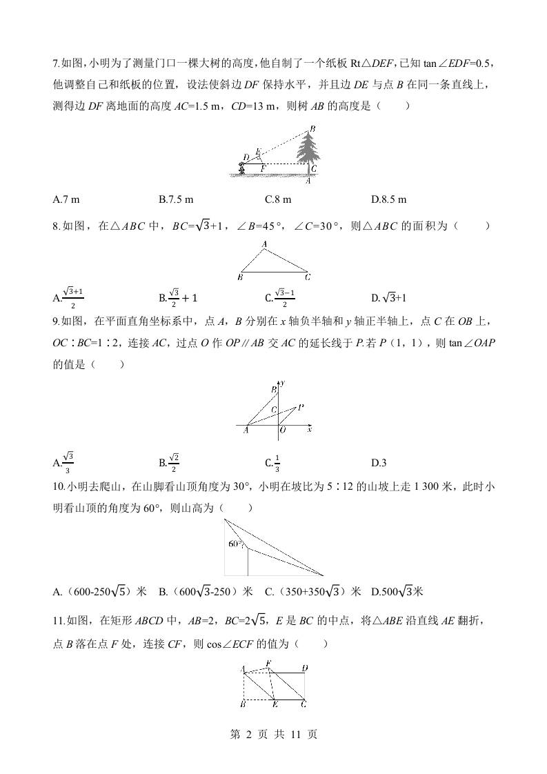 第二十六章 解直角三角形 综合检测