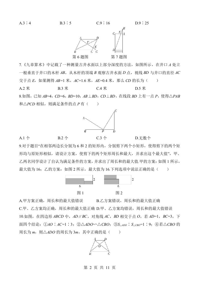 第二十五章 图形的相似 综合检测