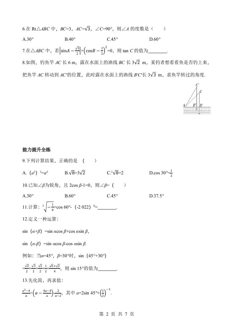 初级 2.2 30°,45°,60°角的三角比 同步练习