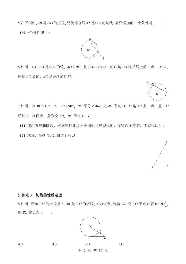 首页 > 全部 > 数学 > 3.4 直线与圆的位置关系 同步练习