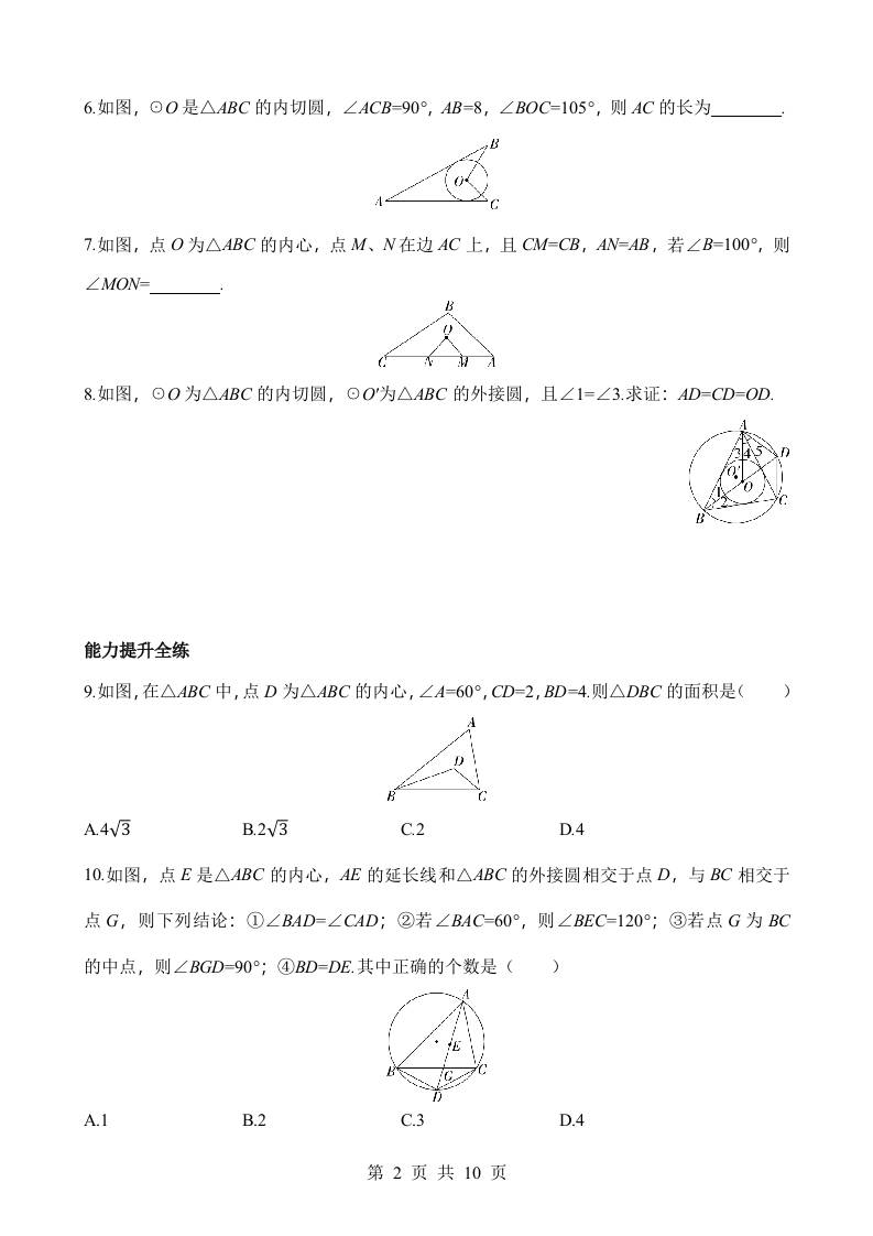 首页 > 全部 > 数学 > 3.5 三角形的内切圆 同步练习