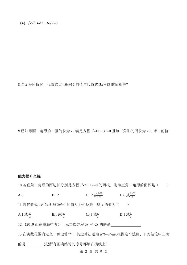 首页 > 全部 > 数学 > 4.3 用公式法解一元二次方程 同步练习
