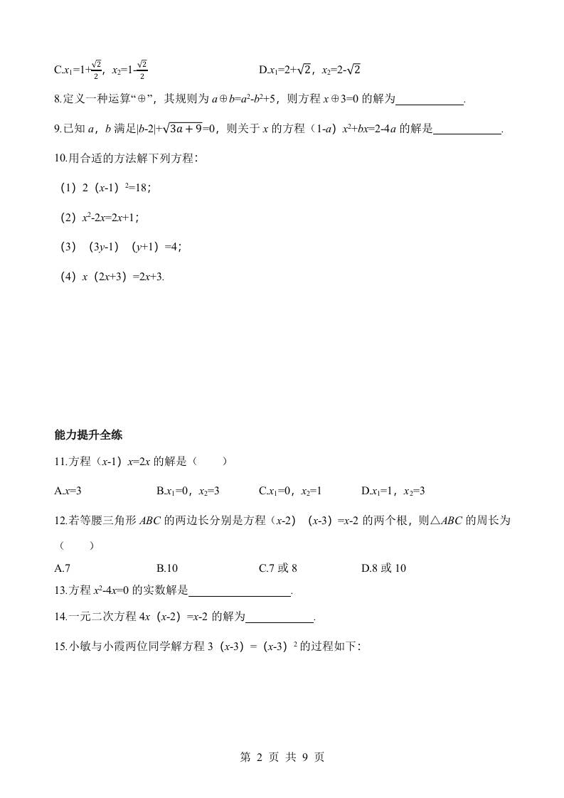 初级 4.4 用因式分解法解一元二次方程 同步练习