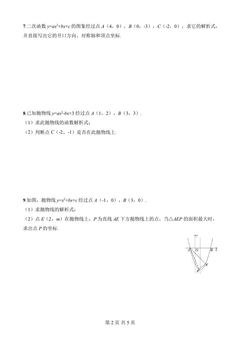 初级 22.1.4.2 用待定系数法求二次函数解析式