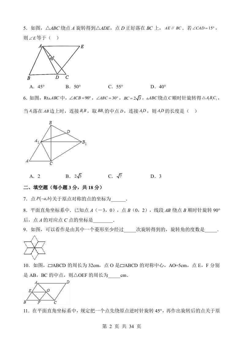 首页 > 全部 > 数学 > 第23章 旋转 单元测试