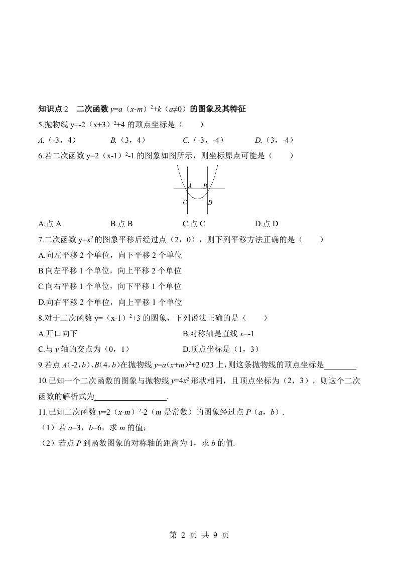 初级 1.2.2 二次函数y=a(x-m)2+k(a≠0)的图象及其特征 同步练习