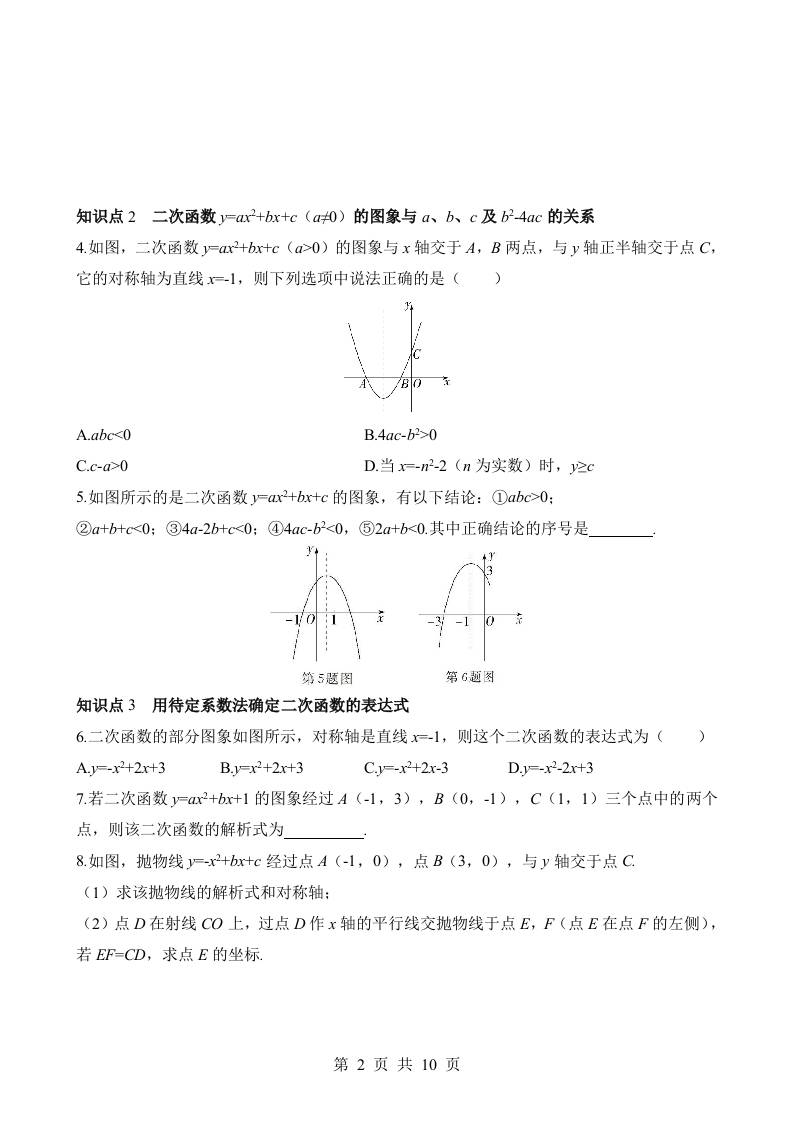 初级 1.2.3 二次函数y=ax2+bx+c(a≠0)的图象及其特征 同步练习