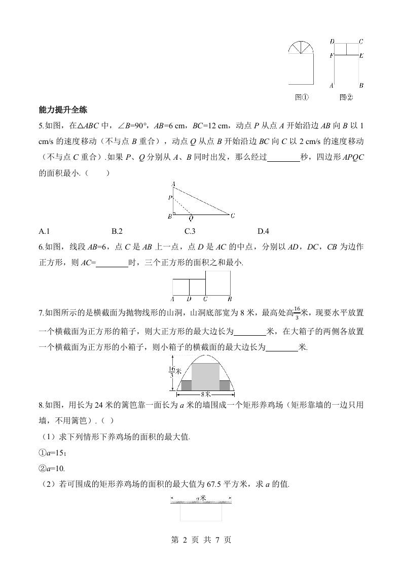 1.4.1 利用二次函数解决面积最值问题 同步练习