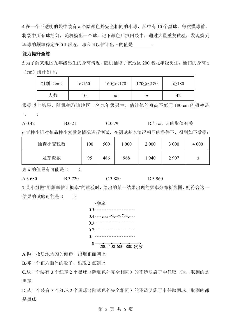 首页 > 全部 > 数学 > 2.3 用频率估计概率 同步练习
