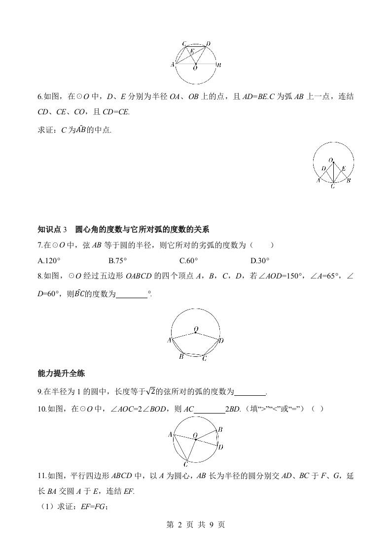 3.4.1 圆心角定理 同步练习