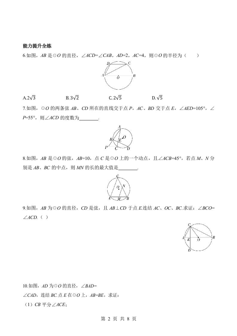 3.5.2 圆周角定理的推论2 同步练习