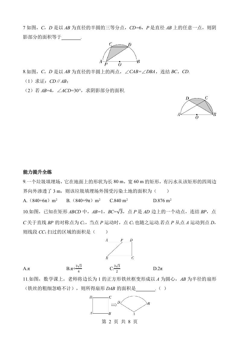 首页 > 全部 > 数学 > 3.8.2 扇形面积公式 同步练习