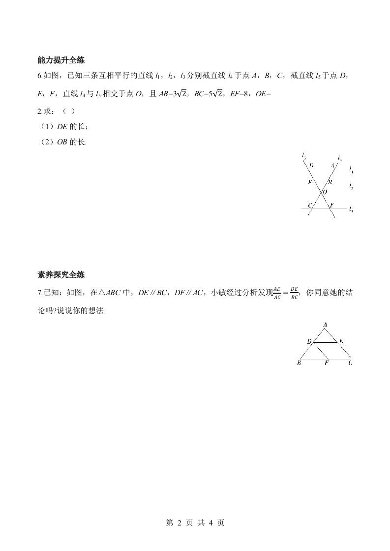 首页 > 全部 > 数学 > 4.2 由平行线截得的比例线段 同步练习