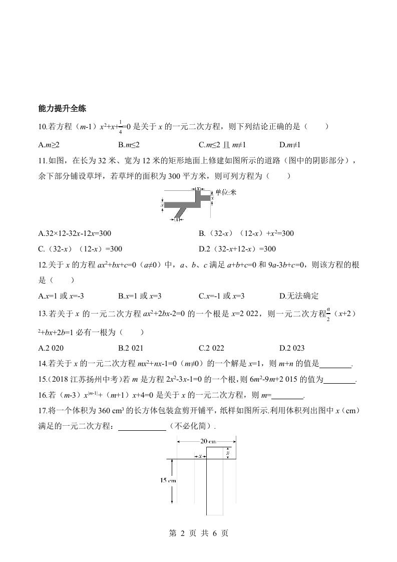 1.1 一元二次方程 同步练习
