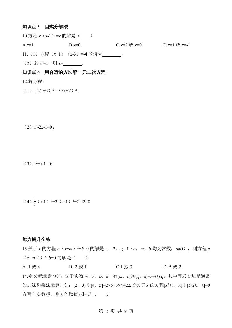 初级 1.2 一元二次方程的解法 同步练习
