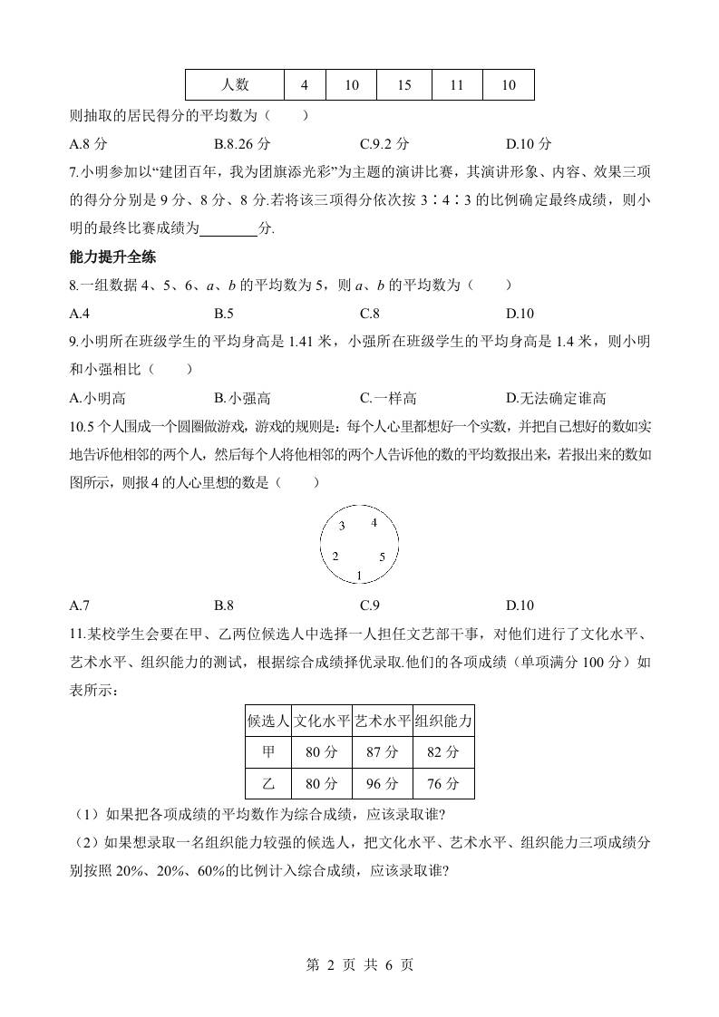 初级 3.1 平均数 同步练习