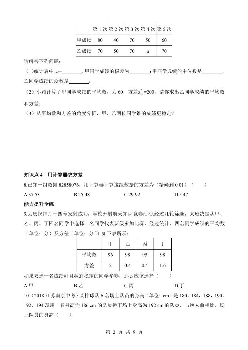 初级 3.4 方差-3.5 用计算器求方差 同步练习