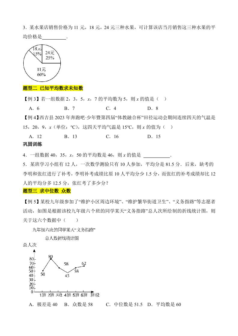 初级 第三章 数据的集中趋势和离散程度(4类题型突破)