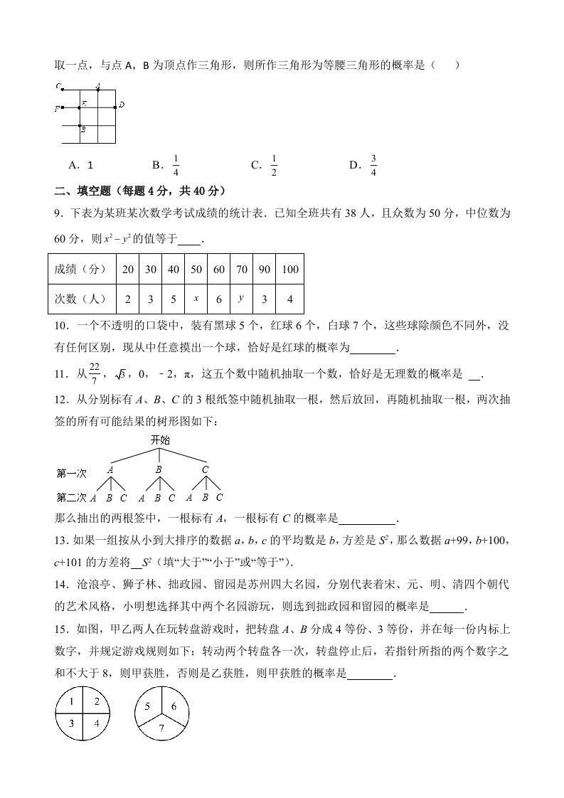 初级 第四章 等可能条件下的概率(单元重点综合测试)