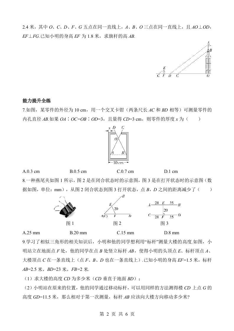 首页 > 全部 > 数学 > 3.5 相似三角形的应用 同步练习