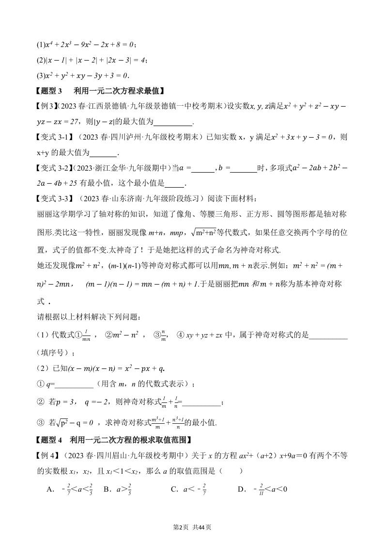 初级 21-一元二次方程-八大题型(拔尖)