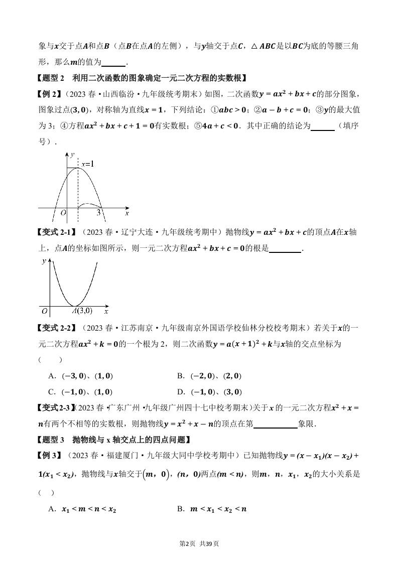 22-二次函数与一元二次方程-八大题型