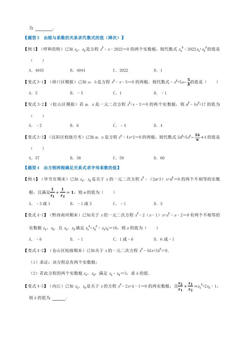 初级 专项21-一元二次方程的根与系数的关系-八大题型