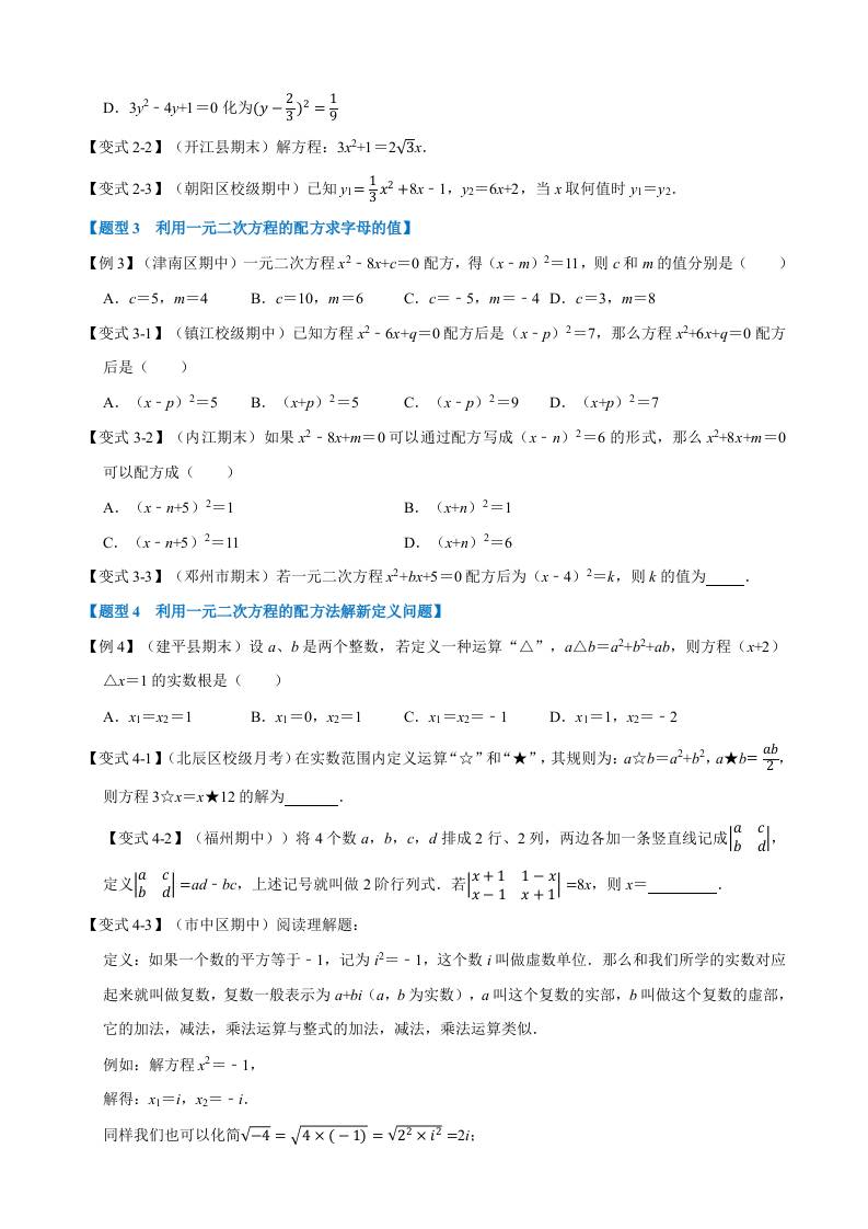 专项21-用配方法求解一元二次方程-重难点题型