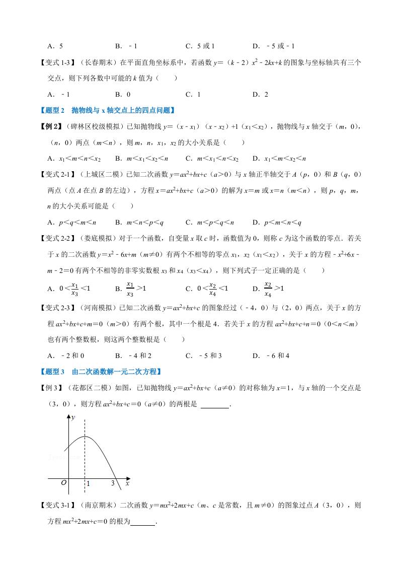 初级 专项22-二次函数与一元二次方程-重难点题型