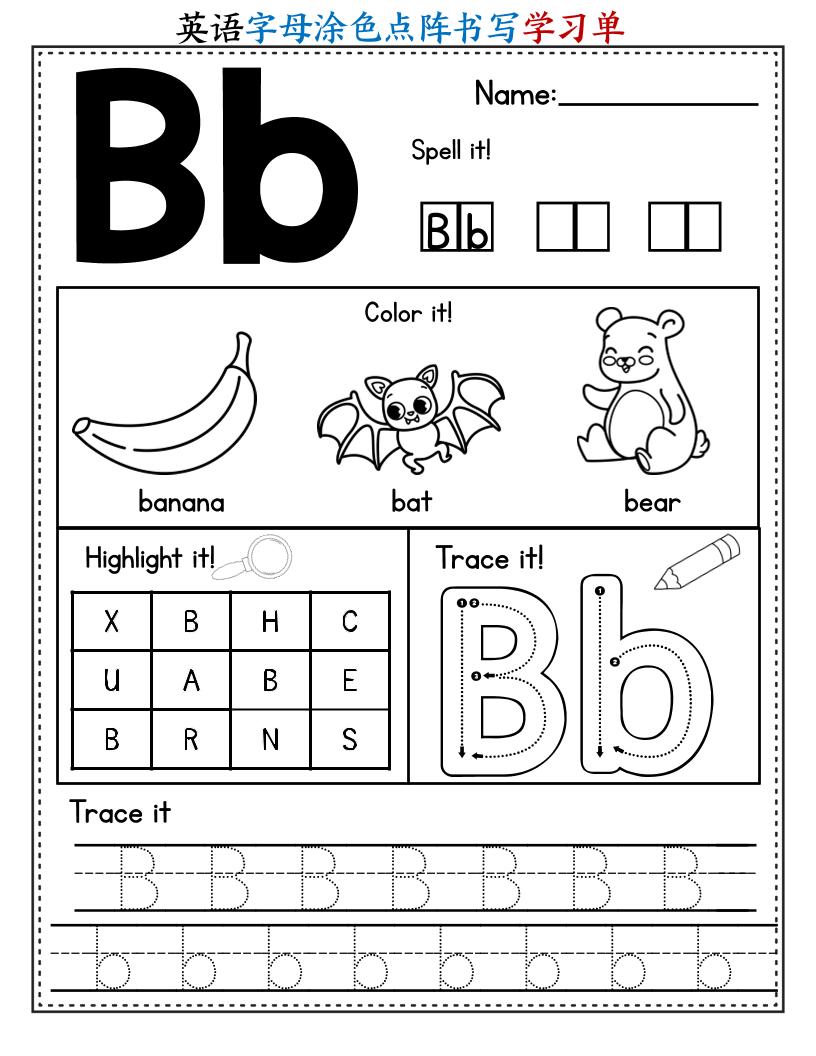 初级 二升三暑假英语字母涂色点阵书写学习单26页-三上英语