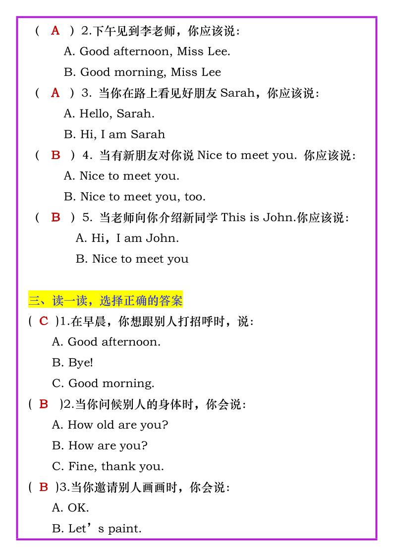 首页 > 全部 > 英语 > 【2025秋新版】三年级上册英语期中常考情景对话专项练习题