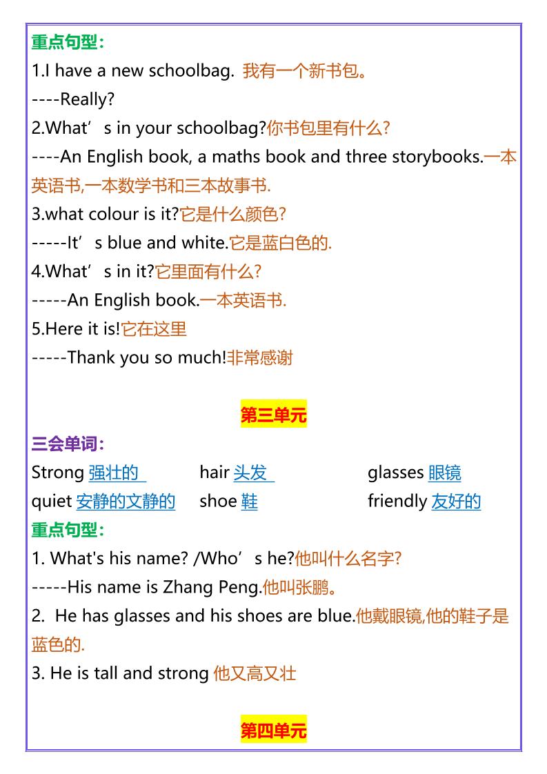 首页 > 全部 > 英语 > 【2025秋新版】四年级上册英语Unit1-8重点知识