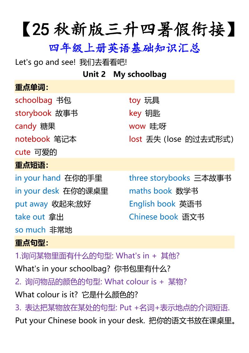 首页 > 全部 > 英语 > 【2025秋新版】四年级上册英语基础知识汇总