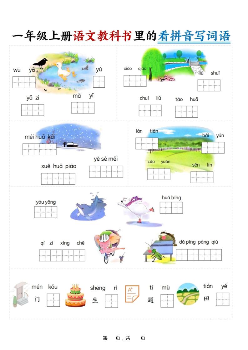 初级 新一上语文教科书里的看拼音写词语(16页)