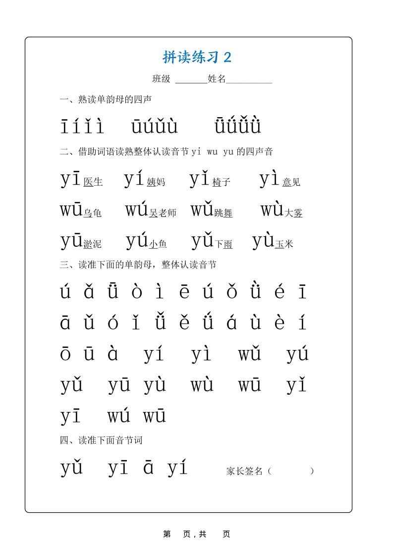 初级 新一上语文拼音拼读专项练习20天(20页)