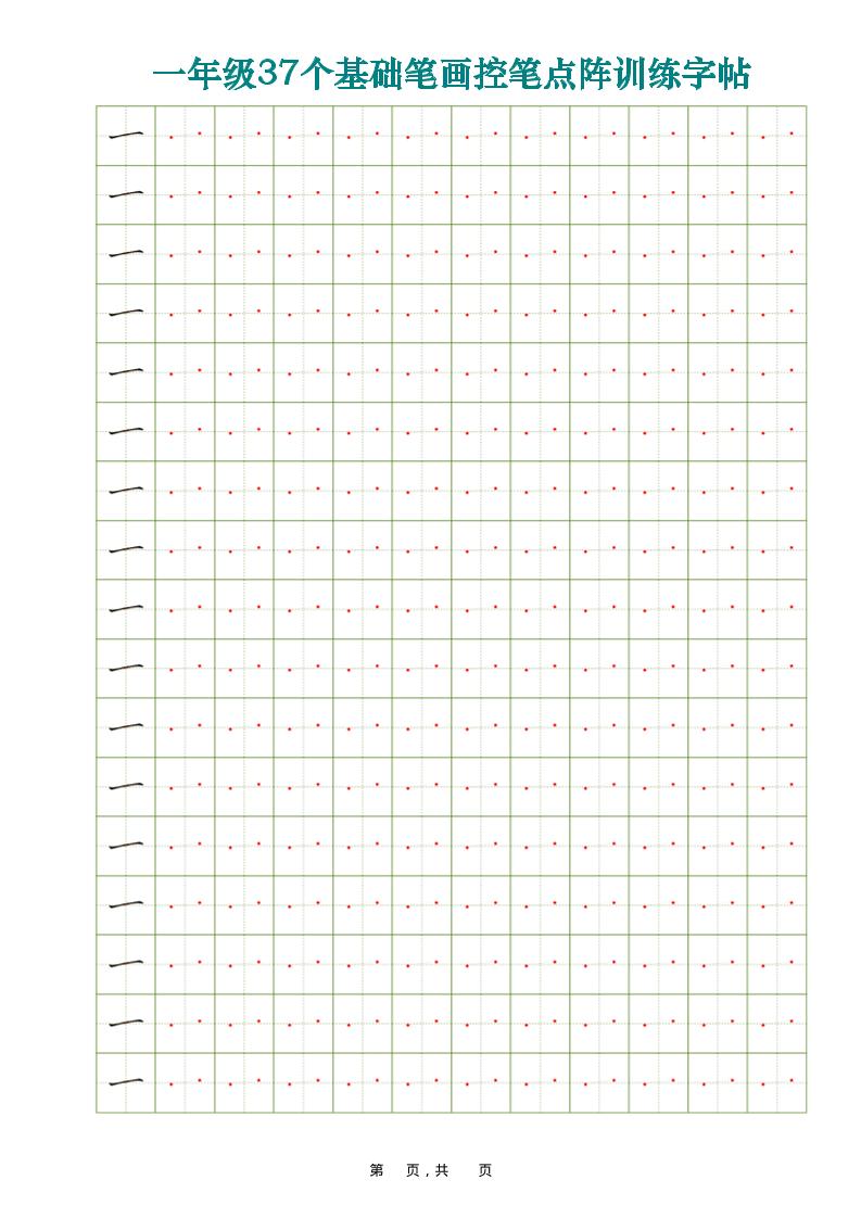 一年级上语文37个基础笔画控笔点阵训练字帖37页