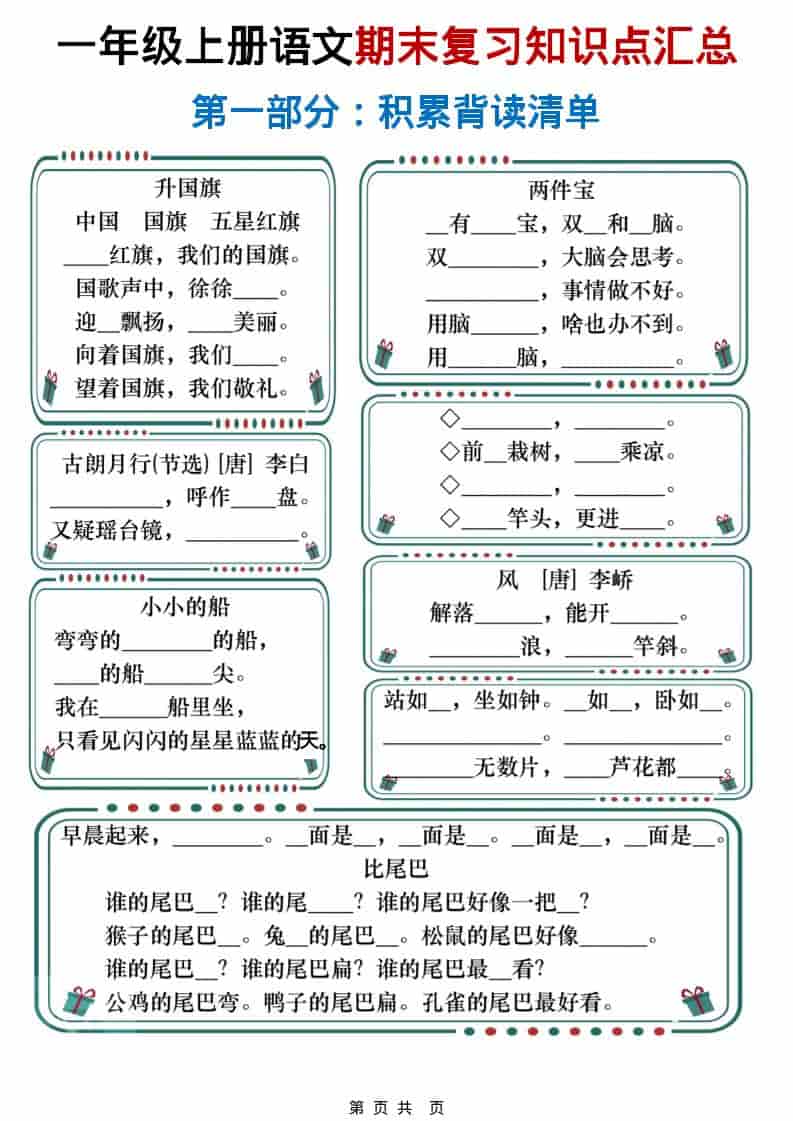 一年级上语文期末复习知识点总结练习