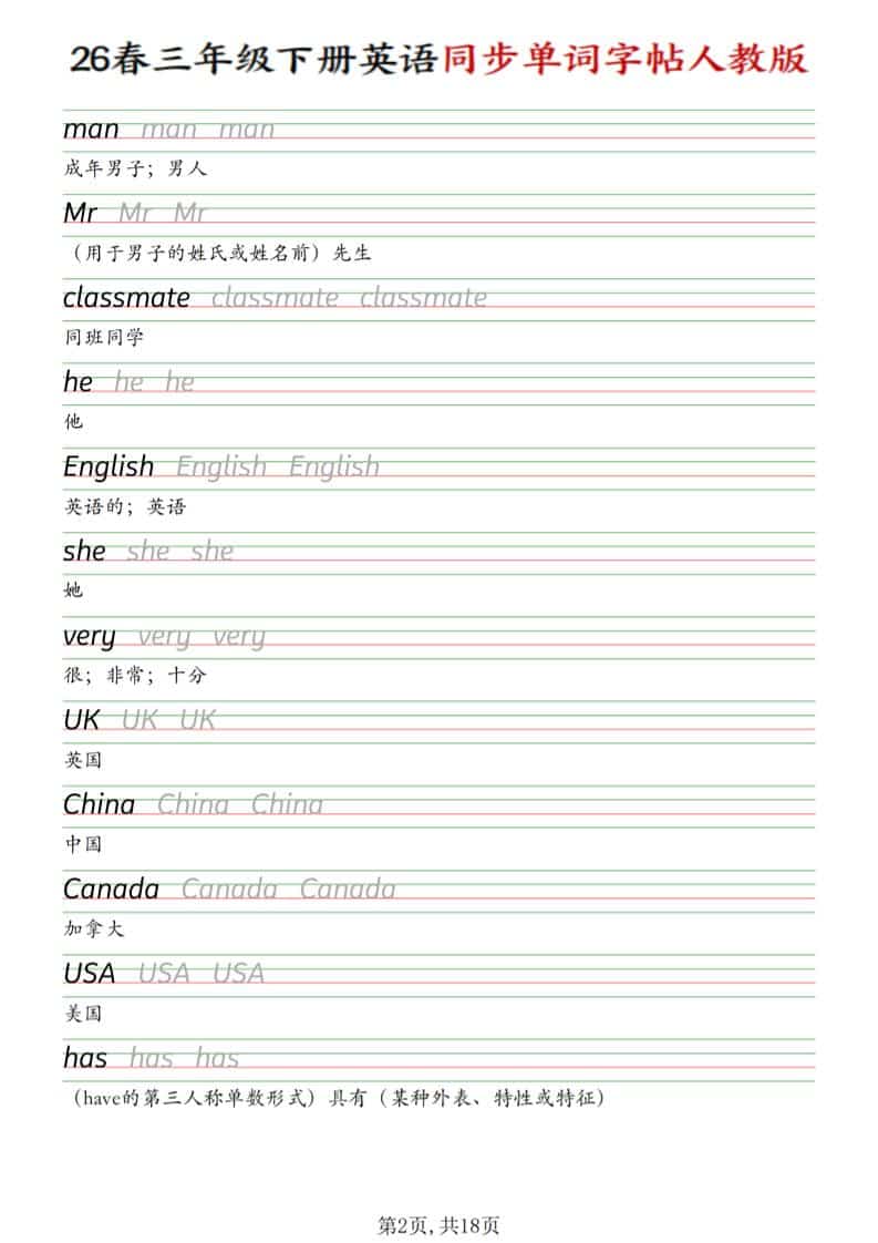 首页 > 全部 > 英语 > 三年级下英语同步单词字帖《人教版》