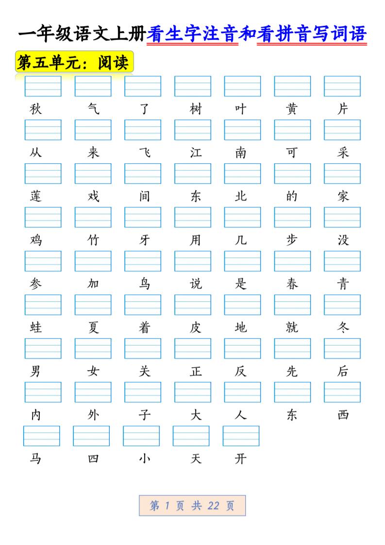 一年级上语文37个基础笔画控笔点阵训练字帖37页